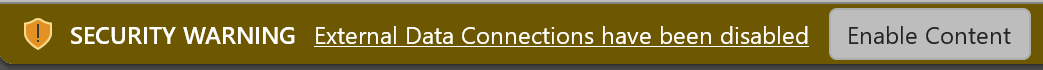 - You will see a Security Warning at the top of Excel. This is because the connection to Management Toolbox is "external" to your PC/network. The connection to Management Toolbox is safe and secure (encrypted).